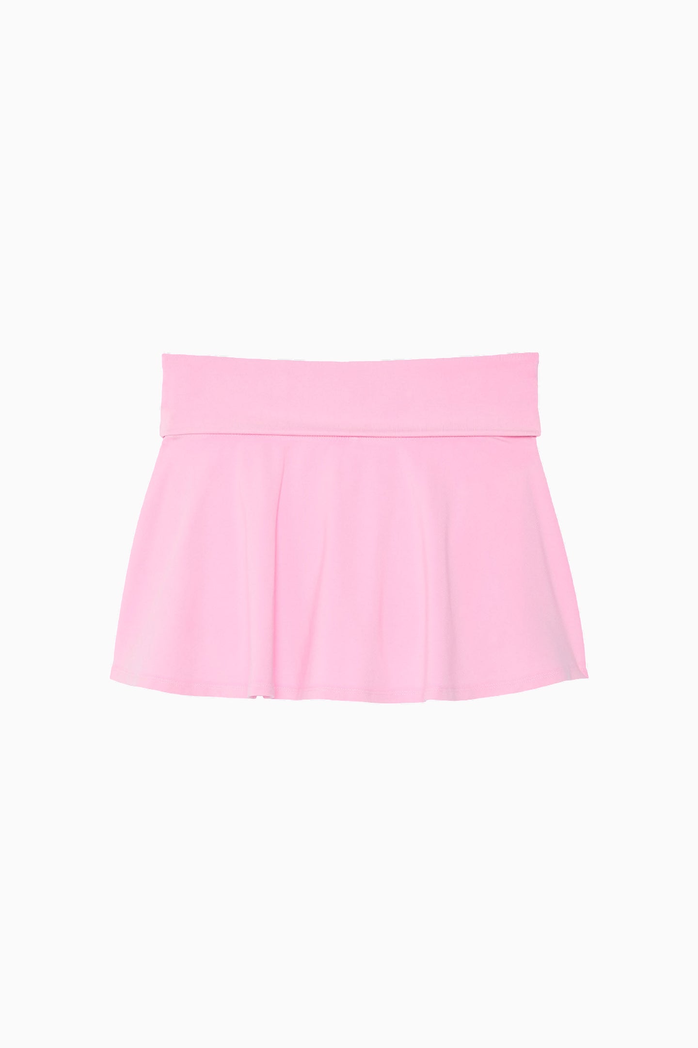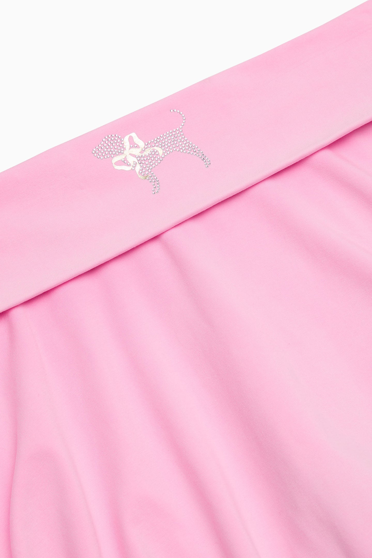 Introducing the Cotton Foldover Flirty Skirt from the exclusive, limited-edition PINK x LoveShackFancy collaboration. All kinds of flirty, flouncy, and fun, this skirt also has built-in shorts—need we say more? There’s also a foldover waistband with eye-catching diamante details. It looks super cute with the PINK x LoveShackFancy Retro Cotton Tee.